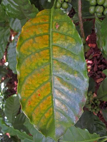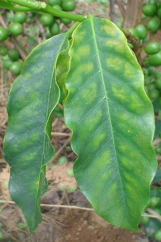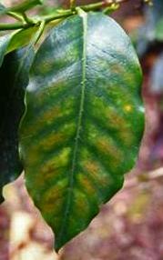 Deficiencia severa de magnesio (C. arabica).