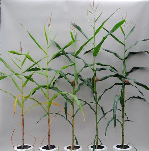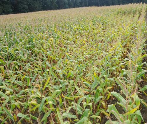 Deficiencia de nitrógeno en mazorcas (derecha).