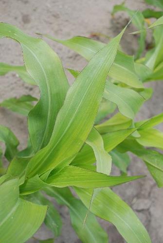 Las plantas afectadas presentan un crecimiento escaso y ralo. Las hojas toman un color verde pálido uniforme.