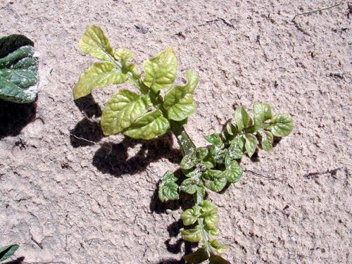 Las plantas jóvenes pueden mostrar síntomas de deficiencia si la semilla de papa se cultiva en suelos con bajo contenido en Mo. El amarillamiento de las hojas es similar al de las deficiencias de nitrógeno o de azufre.