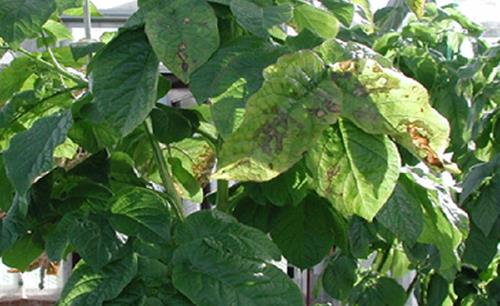 Las hojas viejas son las más afectadas: el marrón grisáceo y manchas de color bronce aparecen por primera vez en el medio de las hojas, después en todo el follaje.